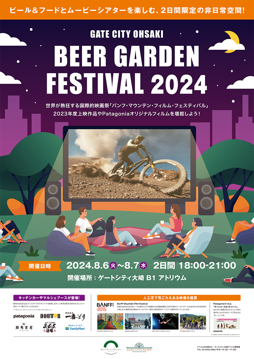 またBANFF国際映画祭の作品やpatagoniaオリジナルフィルムを、芝生の上でお酒と共にお楽しみいただけます。