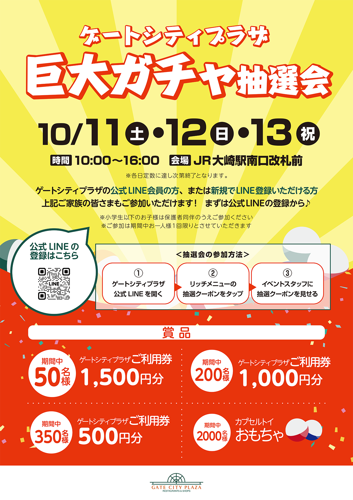 ゲートシティプラザ公式LINEにご登録がお済みでない方は、この機会に 公式LINEに登録 して