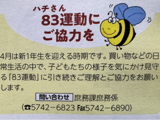 朝 8 時台の登校時間帯と午後 3 時の下校時間帯、日常生活で登下校時のこどもたちの様子を気にかけ、見守る運動です。